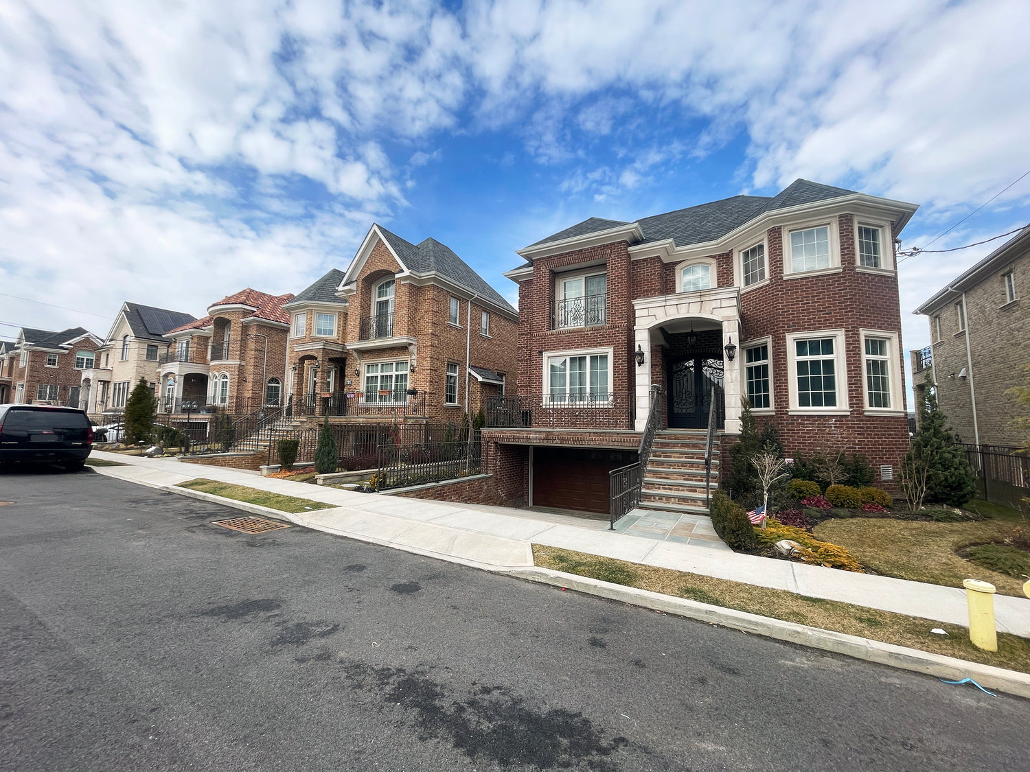 We had the opportunity to work with a local architect to design 42 new single family homes on a parcel of undeveloped land in Queens a few years ago. The photo here is an example of some of the homes that are part of this project. These brick center hall style homes are very in keeping of the evolving nature of North Queens, while still providing a spacious interior and even a backyard! While all of the homes at a glance look the same, each one is slightly different. Having differences such as hip roofs, gable roofs, turrets versus flat walls, one and two story porticos, different color bricks, shingle or terracotta roofs and railing style all contribute to giving each home a little bit of their own character. Also all of the floor plans are slightly tweaked for each owner of the home as each house was spec built after each parcel was sold. While it can be understood seeing so many similar homes next to each other might feel strange, it does give a sense of community for these three blocks where the houses are located. In fact, many of the new homes that surround this project look similar to these if not even more elaborate.