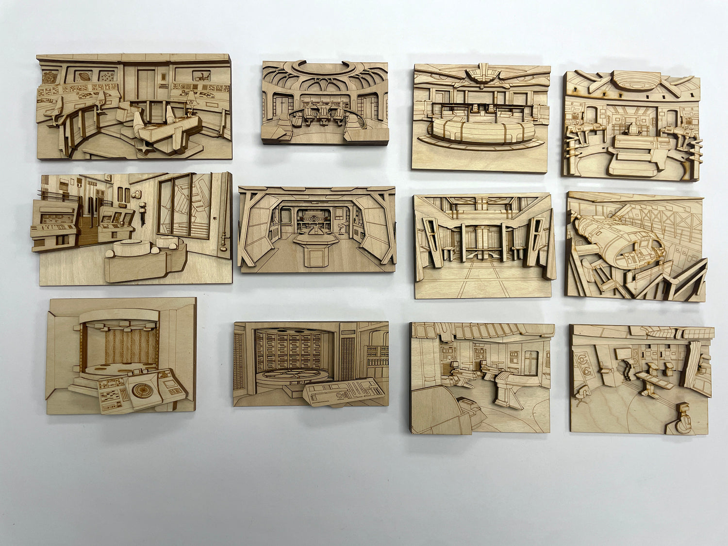 These models replicate the sets we have all grown up and loved of our favorite starships. Each model is designed to have a forced perspective giving each three dimensional model a little something extra as you look at all the fine details. If you are a fan of bridges, engineering, sick bay, or transporters all these sets are there. As of now we have interiors for the Original Enterprise, NCC-1701-D, Voyager and NX-01. We have spent many hours making these models as screen accurate as possible making sure each button, door decal, railing and control panel is there for your enjoyment. The most wonderful part of these models is that the more you look at them the more things you start to find. These models come in two sizes, small and large. It is up to you which scale you prefer. Become a collector today!