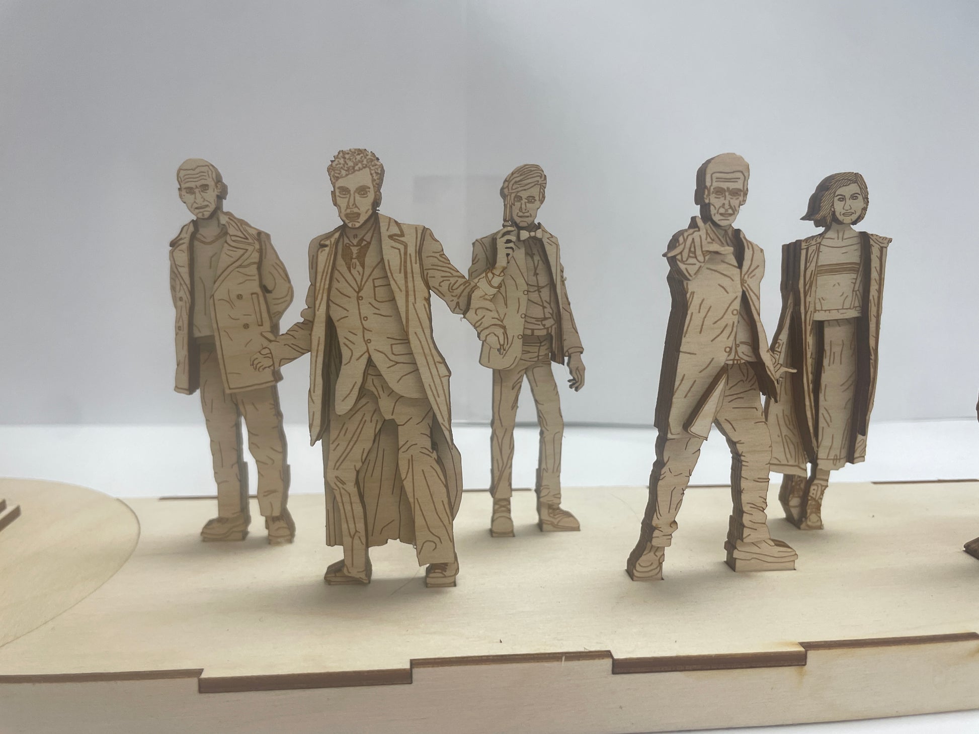 The ultimate model for your Doctor Who fan in your life. A fully three dimensional pop art stile wood model showcases all 15 incarnations of the Doctor standing around their Tardis. With this model you have the whole visual history of the doctor at your finger tips. Let this be the new centerpiece of your Doctor Who Collection. Available in 3 versions! All Doctors, Classic Who and New Who!