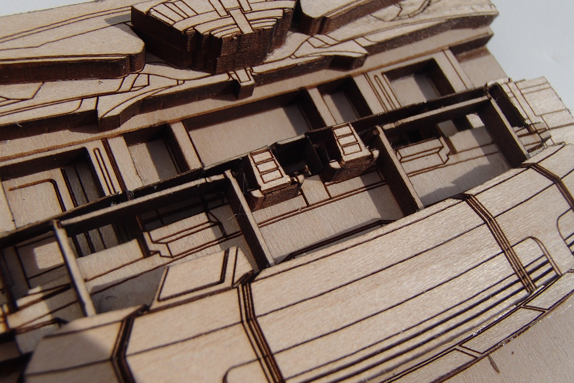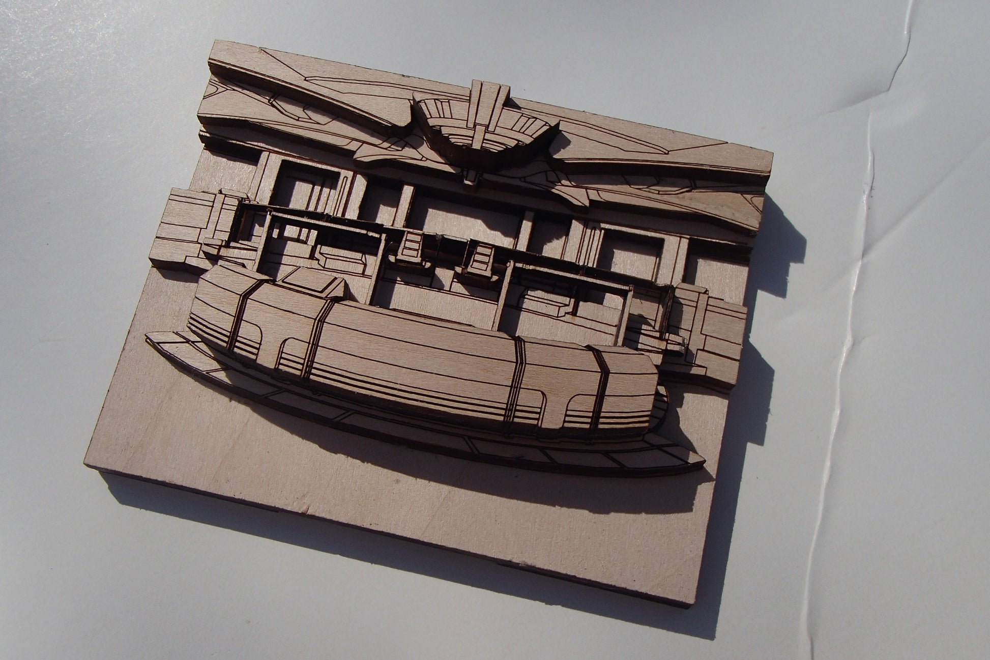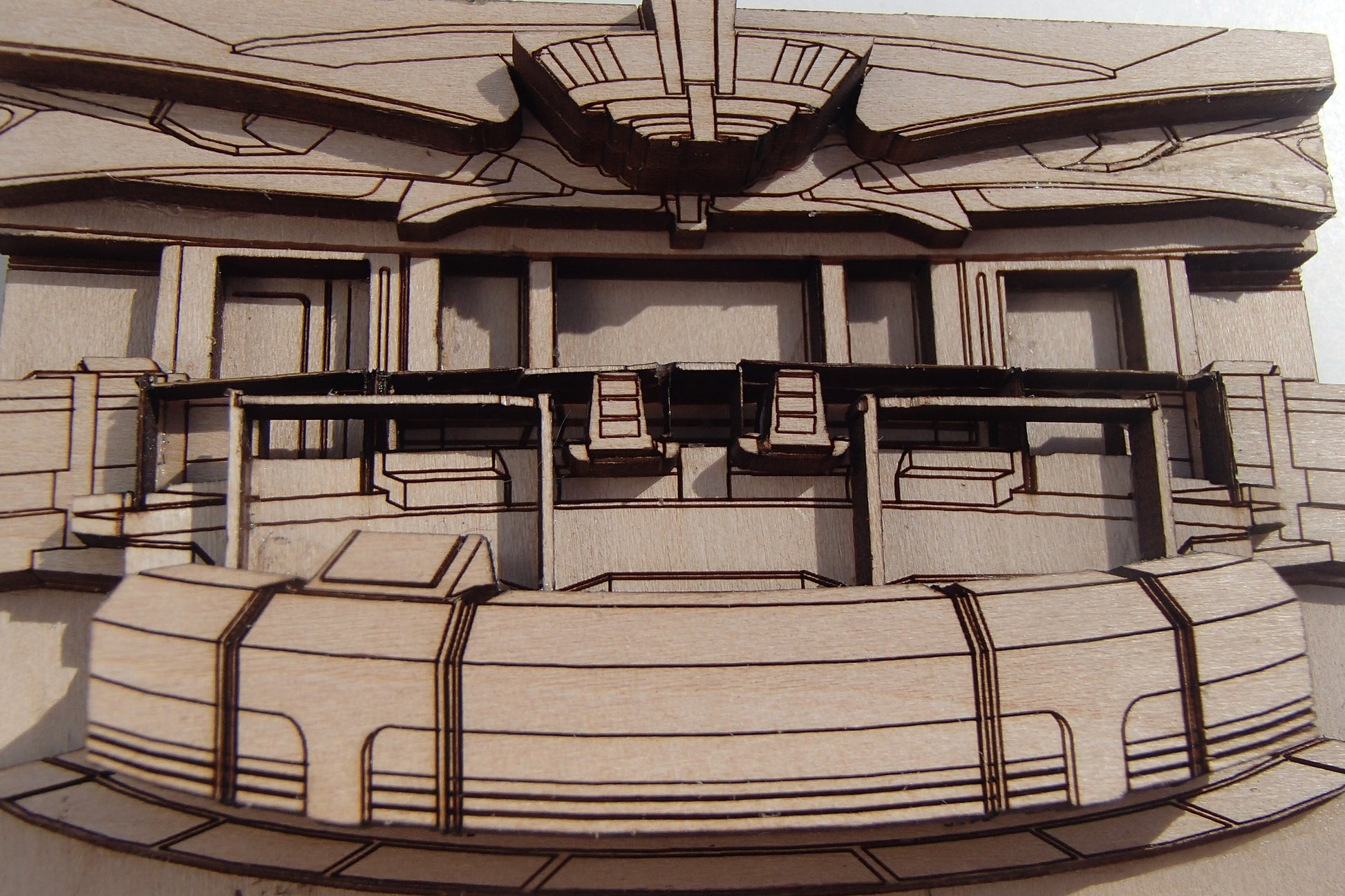 A wonderful laser cut model of VOYAGER'S BRIDGE! Captain there is coffee in that Nebula! A unique piece that would stand out in any Trek display. Laser cut from durable plywood sheets and layered to produce a three dimensional effect. Each model is hand assembled by me with all the love of a lifelong Trekkie.