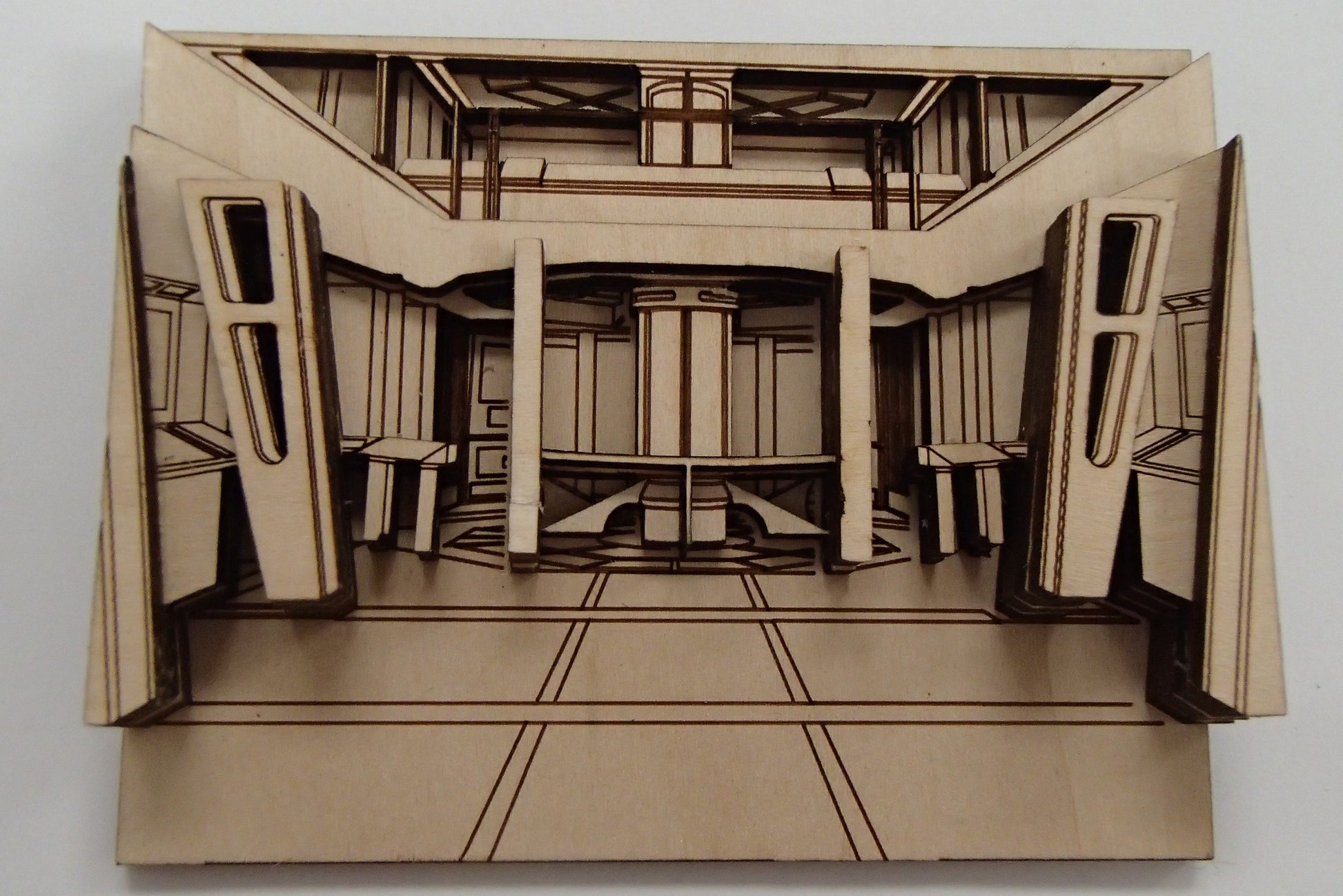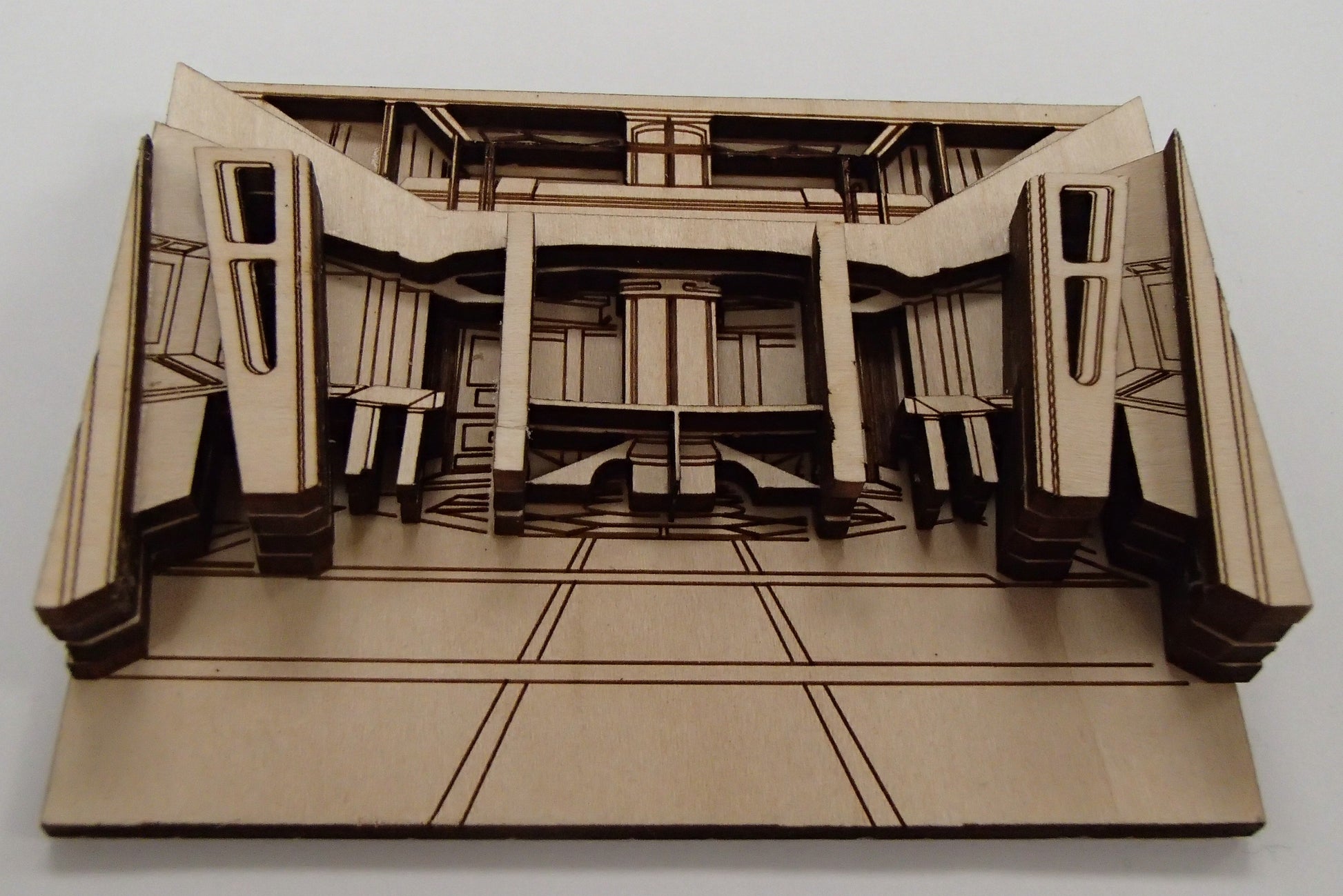 A wonderful laser cut model of VOYAGER'S ENGINEERING! Warp speed... too slow... Lets go Transport or Slipstream! A unique piece that would stand out in any Trek display. Laser cut from durable plywood sheets and layered to produce a three dimensional effect. Each model is hand assembled by me with all the love of a lifelong Trekkie.